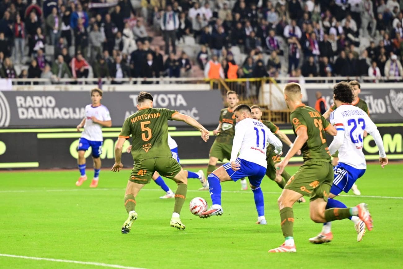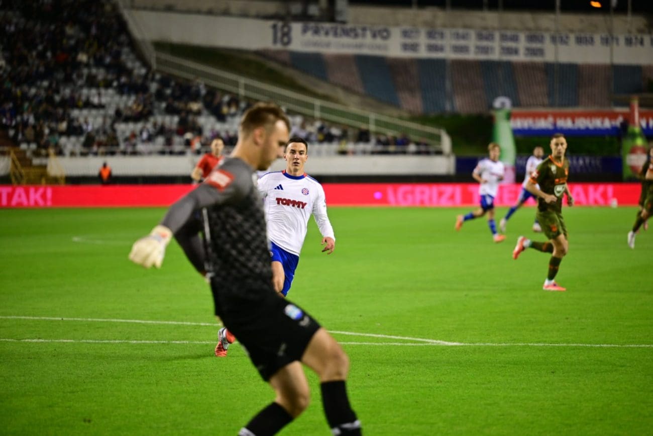 Hajduk danas s početkom od 17:45 igra protiv Osijeka na Poljudu utakmicu 13. kola SuperSport HNL, a rezultat je na poluvremenu 1:0 zahvaljujući golu Krovinovića iz 5. minute.