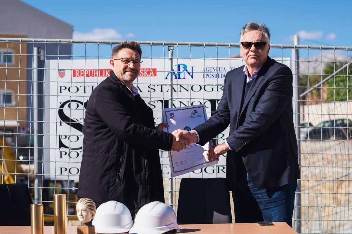 Direktor APN-a Dragan Hristov, gradonačelnik Solina Dalibor Ninčević, predsjednik Gradskog vijeća Ivan Andabaka i dožupan Ante Šošić položili su kamen temeljac za zgradu sa 17 stanova za 17 mladih obitelji, jednim poslovnim prostorom, skladištima i parkingom, u Sv. Kaju u ulici Solinske mladeži.