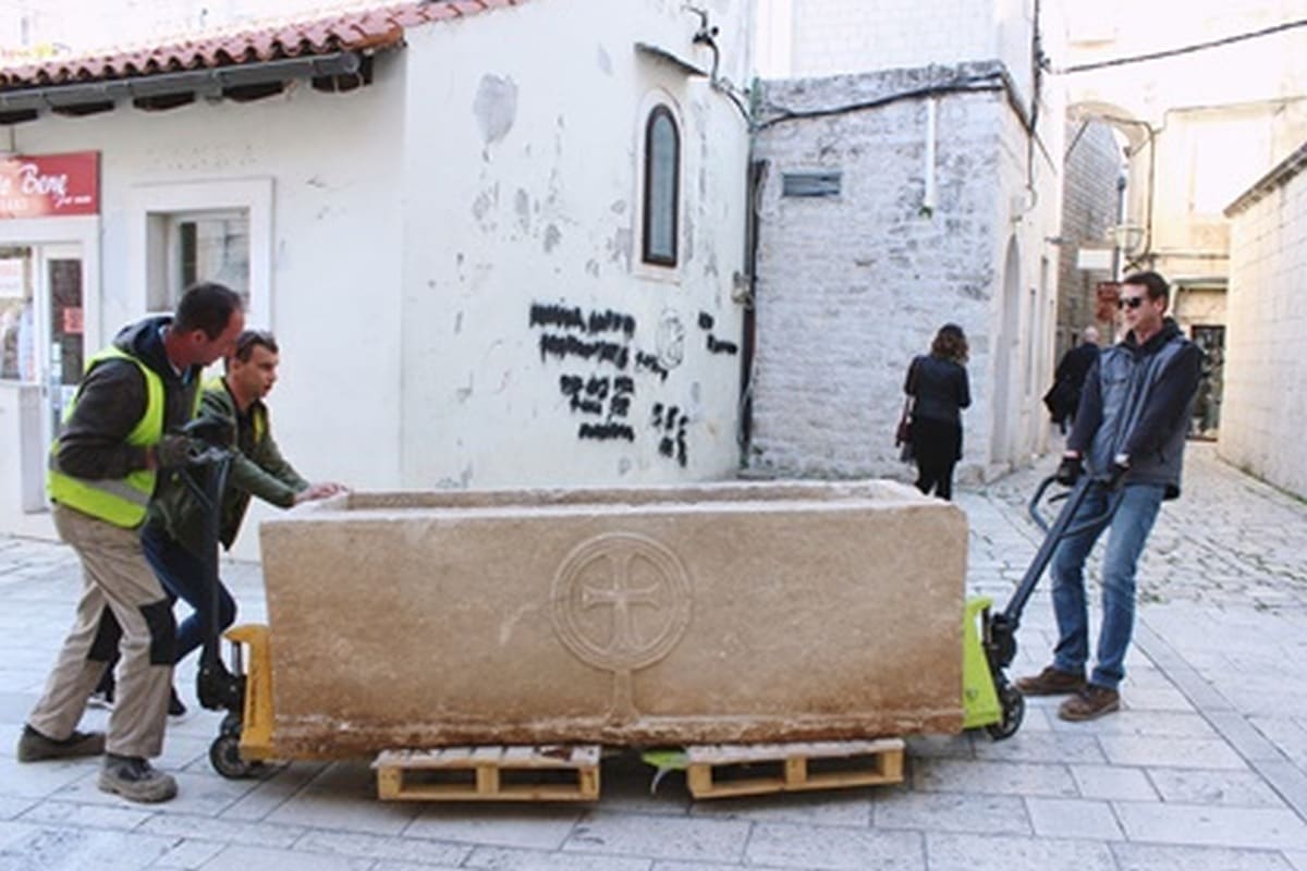 Jučer je pred Muzej grada Trogira stigao kameni sarkofag koji su prilikom istraživanja nekoliko kasnoantičkih grobova i grobnica u ulici Put Ribole pronašli arheolozi iz tvrtke Temenos d.o.o. U njega su prolaznici, očito misleći da je to nova kanta za smeće, bacali otpatke. A onda se netko dosjetio na sarkofag koji datira iz 6. stoljeća zalijepiti upozorenje.