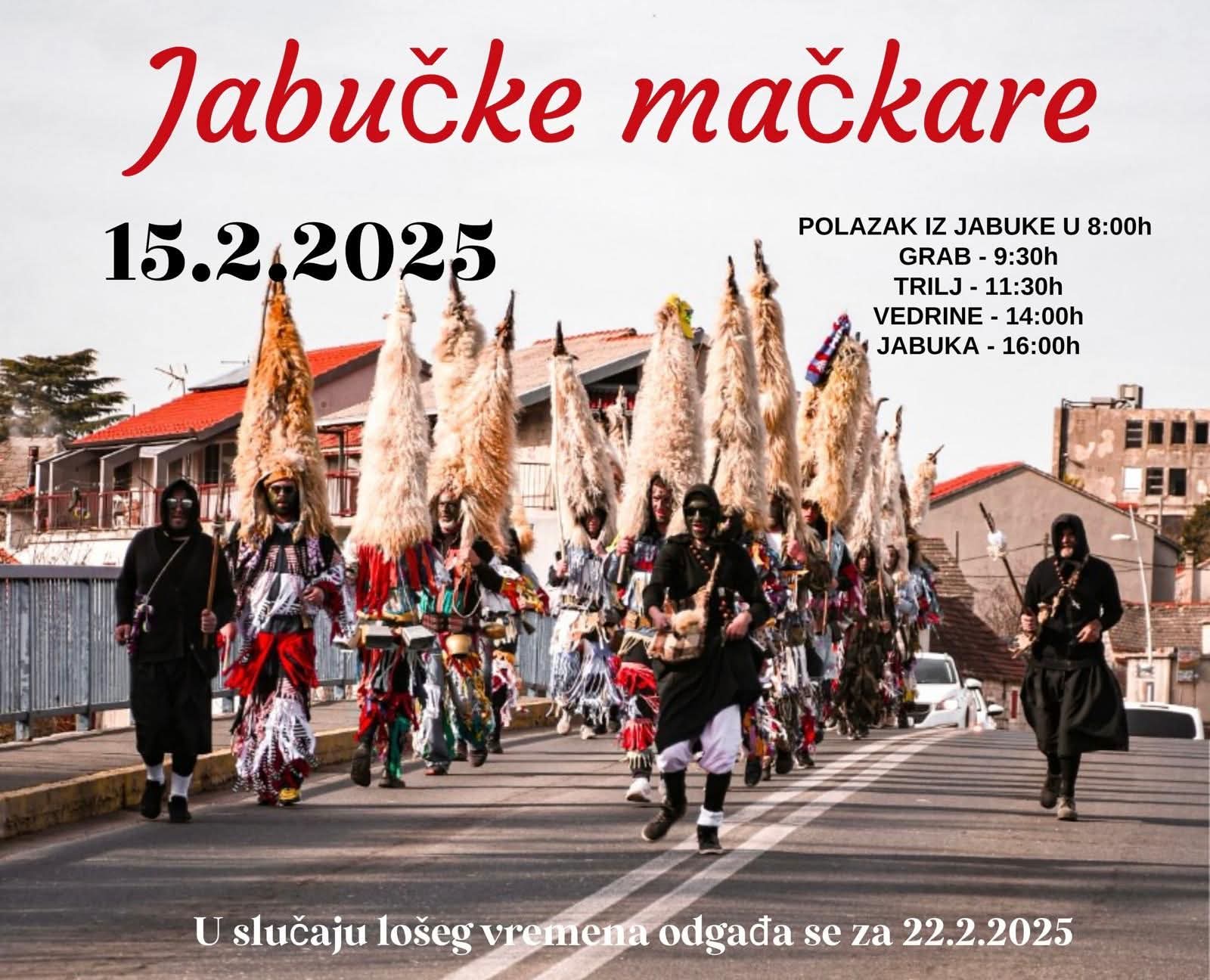Selo Jabuka ponovno priprema tradicionalne mačkare, a ove godine sve ide na još višu razinu! Zabava, maskiranje i nezaobilazna povorka kreću 15. veljače 2025., a organizatori poručuju: "Češljajte mišine, glancajte zvona, perite šudare i šotane, i isprobajte svoje maske – sve mora biti savršeno!"