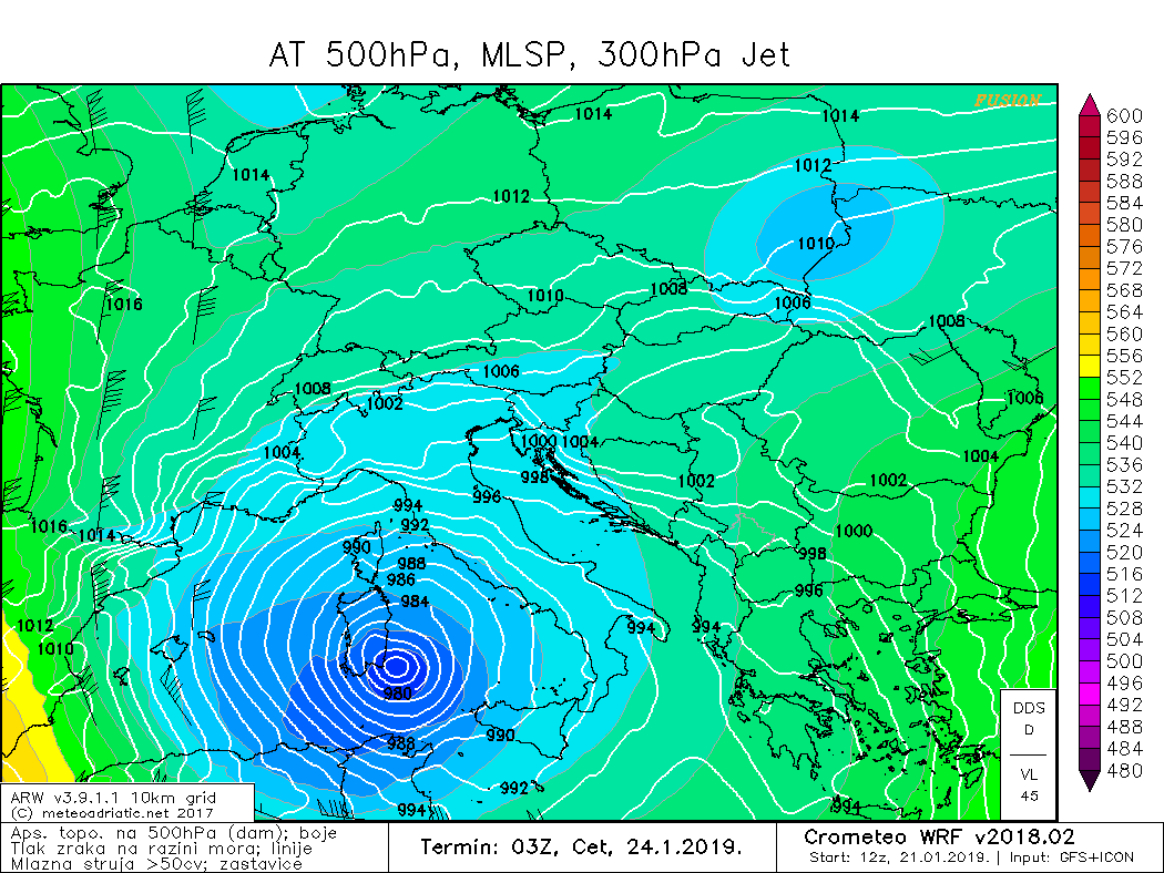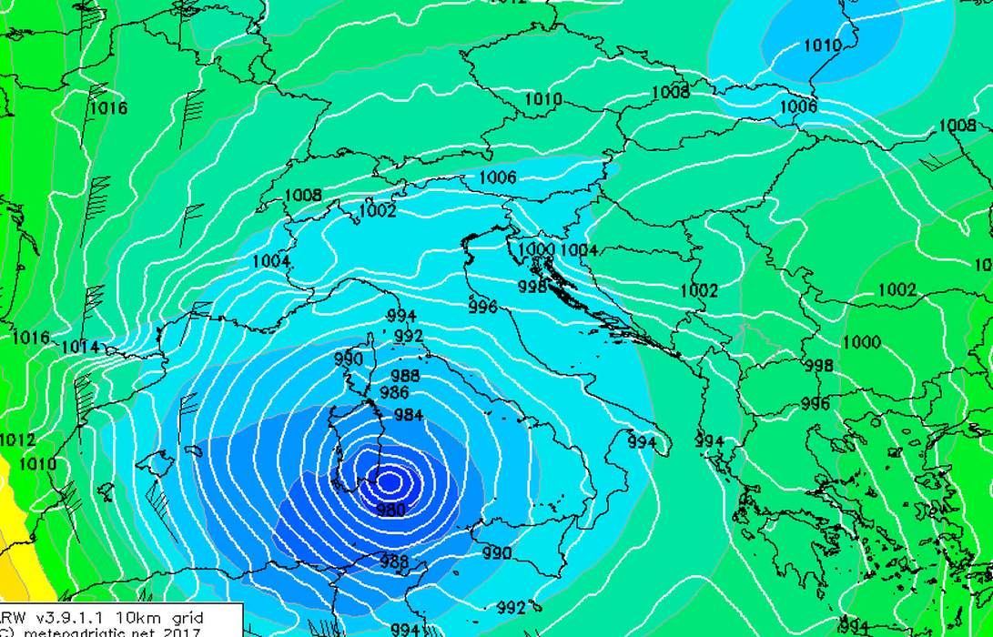 Sredozemna ciklona sve naglašenije djeluje na vrijeme na Jadranu. Jučer je u dijelovima Dalmacije pala obilna kiša, ponegdje preko 30 litara po kvadratnom metru. Kišom je najviše obilovao Solin gdje su pale 43 litre po kvadratnom metru.