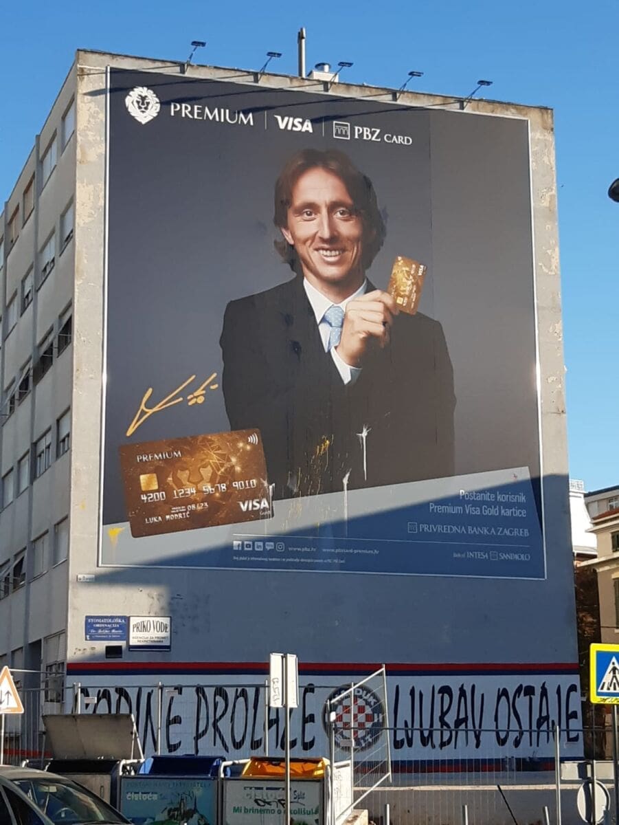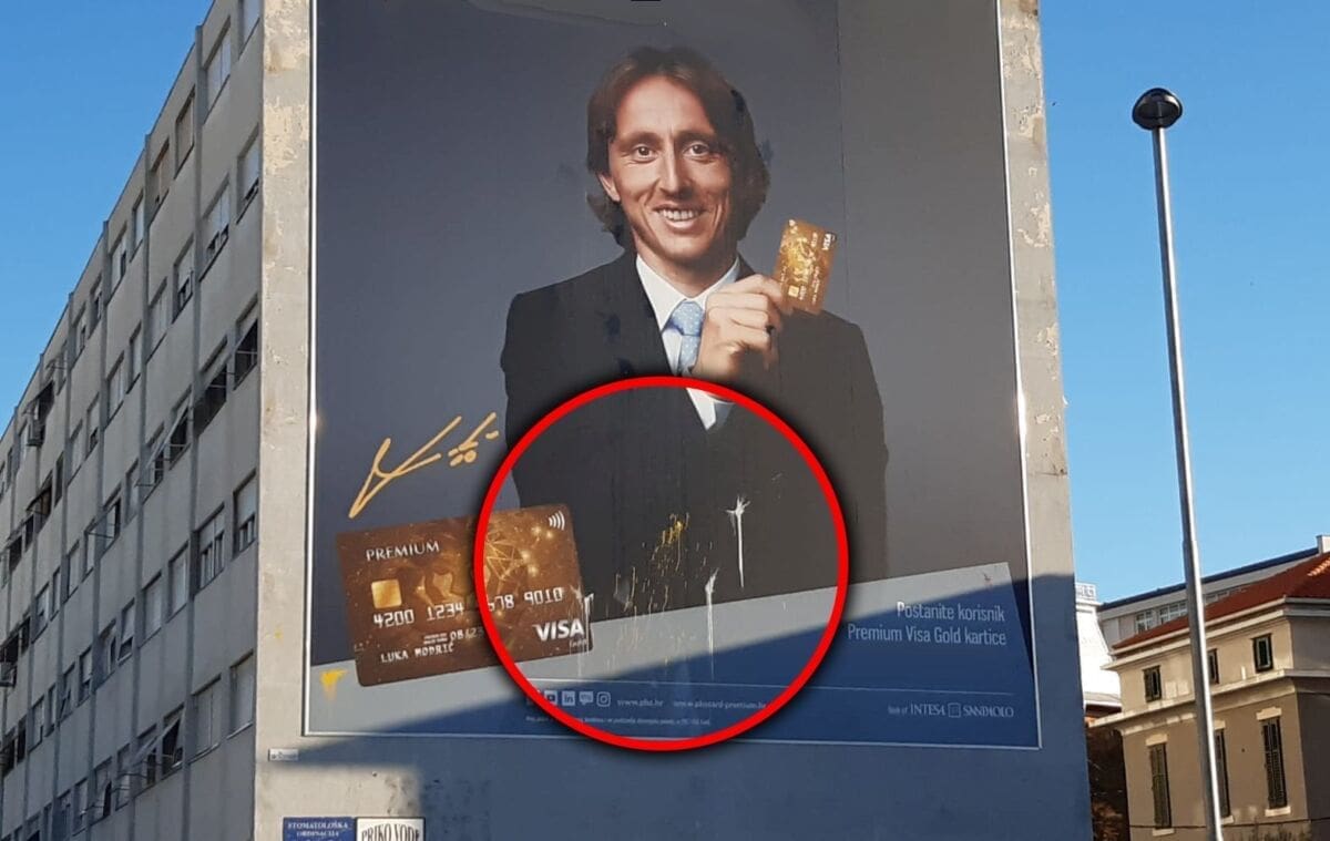 Na tamošnjem plakatu koji reklamira jednu banku u glavnoj "ulozi" nalazi se Luka Modrić. Netko je iz nepoznatih motiva zasuo "Lukin" plakat jajima, tako da je cijeli donji dio plakata uneređen.