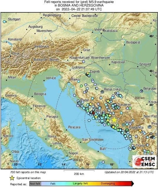 EMSC je izvijestio da je magnituda potresa bila 6.0 prema Richteru, a epicentar 15 kilometara istok-jugoistočno od Stoca.