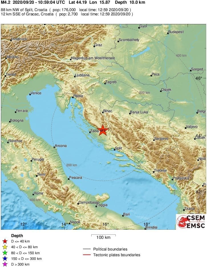 Felt #earthquake (#potres) M4.2 strikes 51 km E of #Zadar (#Croatia) 6 min ago. Please report to: https://t.co/v0KHd5M27G pic.twitter.com/yItrXGxEjA
