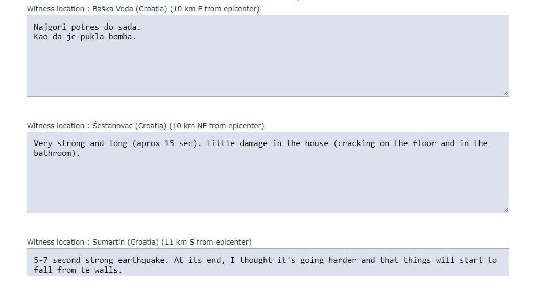 Na stranici EMSC-a jedna od osoba koja je osjetila potres napisala je kako je napukao pod u kupaonici.