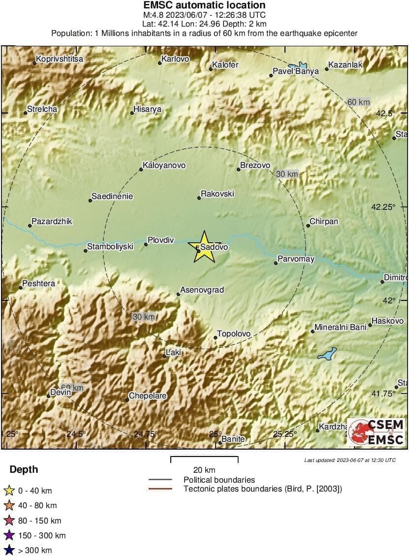 Prema prvim podacima EMSC-a, magnituda potresa je iznosila 4.9 prema Richteru, a epicentar je bio 14 kilometara jugoistočno od Plovdiva.