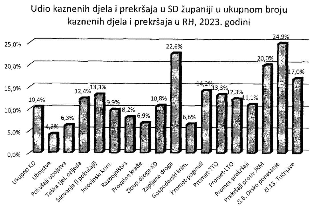Prometnu nekulturu, uništavanje komunalne opreme i prepoznaju kao najveće probleme. Konzumacija i preprodaja droga je visoko rangiran problem što uvjetovano broj zahvaćenih KD i prekršaja potvrđuju efikasnost i prioritete u radu policije", zaključak je koji nudi PU gradskim vijećnicima.
