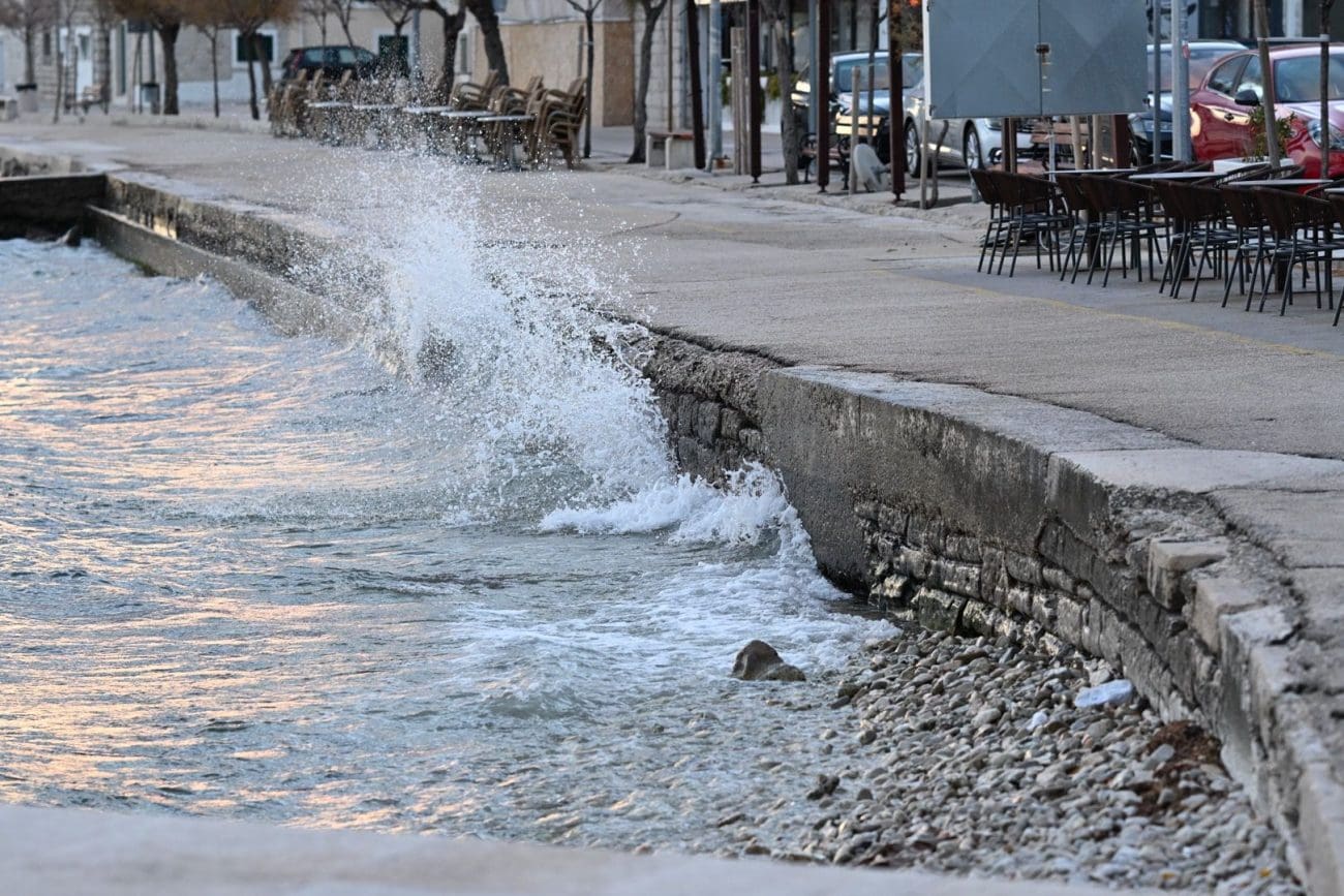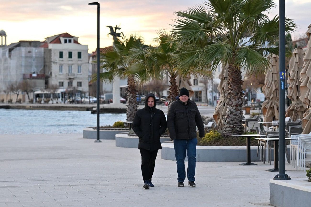 Iako termometar pokazuje 7 stupnjeva Celzija, zbog pojačane bure stvarni osjećaj hladnoće znatno je niži te iznosi svega 2 stupnja. Oštri udari vjetra dodatno su pojačali dojam zimskog vremena, no to nije spriječilo građane da izađu iz svojih domova i prošetaju gradom.