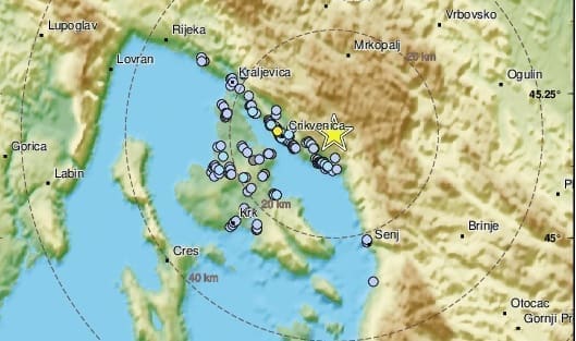 Danas oko 19 sati slab potres osjetio se u okolici Rijeke, 10 kilometara sjeveroistočno od Crikvenice. Bio je magnitude 1.9 prema Richteru.