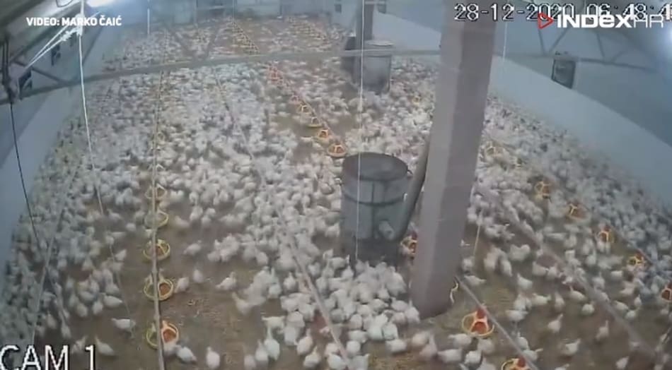 Nadzorne kamere na farmi pilića u OPG-u Kokin dom u Petrinji jutros su snimile trenutak potresa, javlja Index.