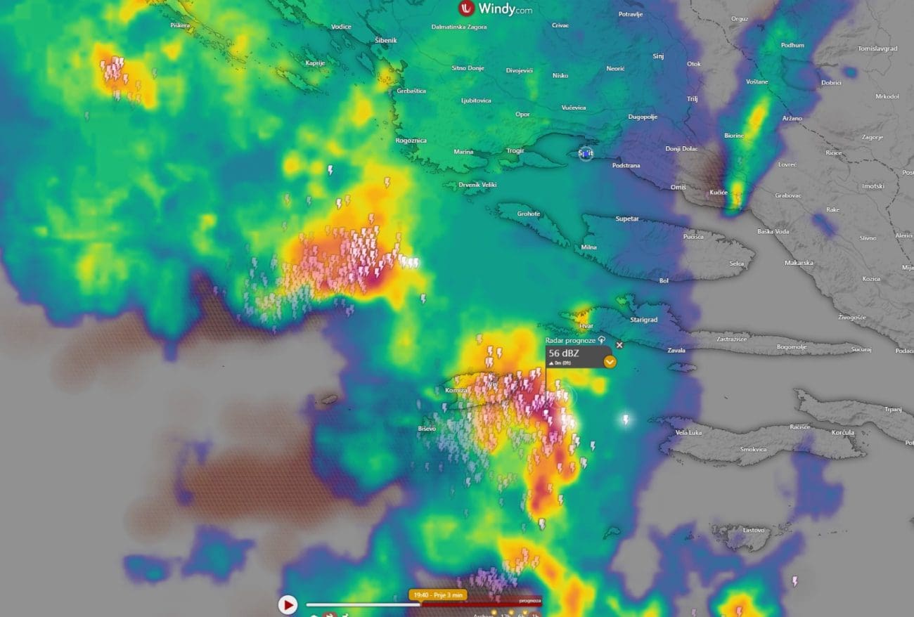 Nakon što je jako grmljavinsko nevrijeme u kasnim popodnevnim satima zahvatilo dio Dalmatinske zagore i velik dio Cetinske krajine i nakon što je zbog odgođena Sinjska alka, novi grmljavinski oblaci stvorili su se nad otvorenim morem srednjeg Jadrana.