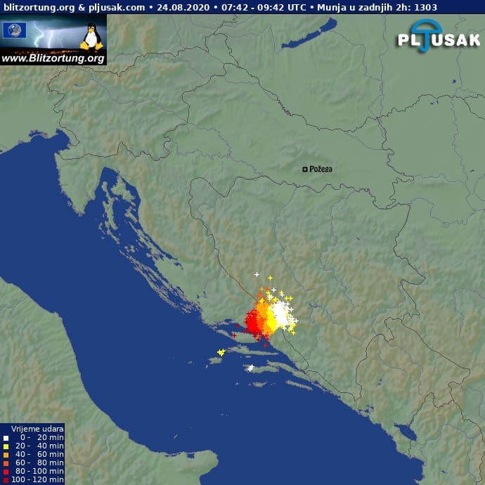 Kako smo već javili, nevrijeme je prvo zahvatilo omiško zaleđe, a potom se premjestilo na imotsko područje. U Dolića Dragi, u općini Lokvičići, palo je 30 litara kiše po kvadratnom metru u vrlo kratko vrijeme, a temperatura zraka se spustila na samo 18 stupnjeva.