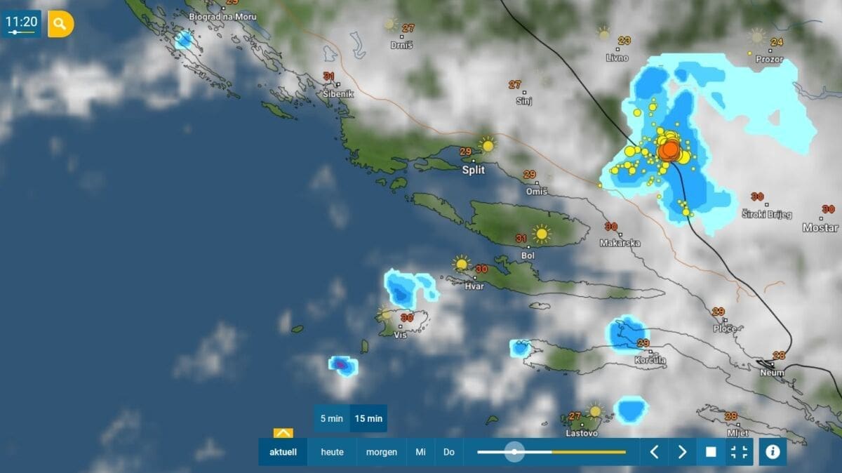 Lokalne nestabilnosti u Dalmaciji obilježile su prvi dio dana. Radi se o uvodu u promjenu vremena koja stiže u noći na utorak i koja će lokalno donijeti obilnije grmljavinske pljuskove.