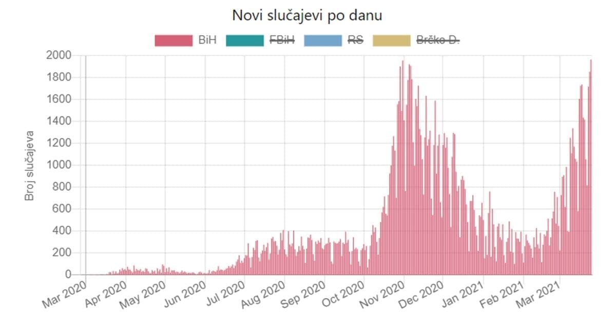 Novi slučajevi registrirani su u svim kantonima u Federaciji BiH.