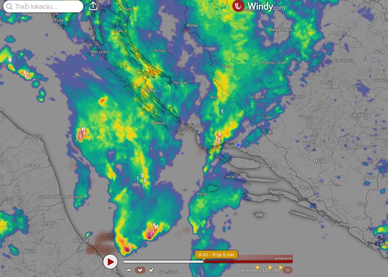 Podno Velebita je zapuhala olujna bura, a pojedine postaje bilježe udare preko 100 km/h (Povile). HAK javlja: