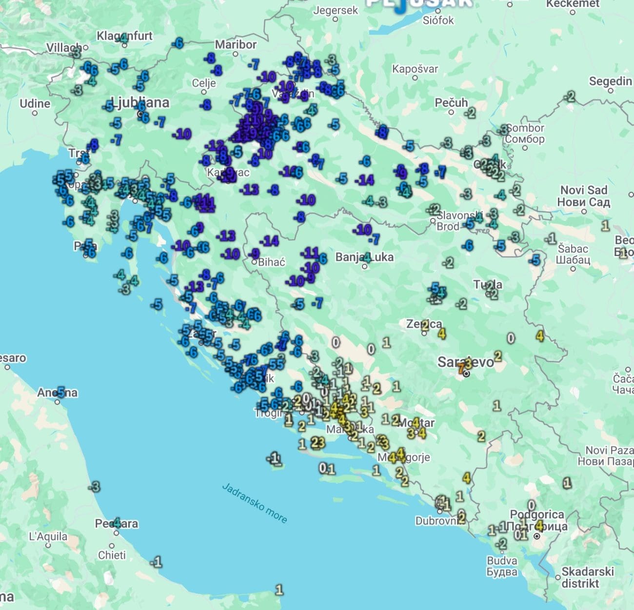 U 9 sati na mjernoj postaji DHMZ-a Zavižan na Velebitu izmjereno je 0 stupnjeva uz snijeg.