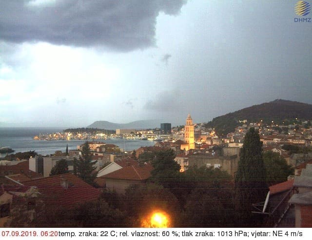 Nakon što je već jučer promjena vremena zahvatila zapadni dio Hrvatske, danas je stigla i do krajnjeg juga. U ranim jutarnjim satima jako grmljavinsko nevrijeme zahvatilo je područje od Zadra do Splita te je lokalno pala obilna kiša.