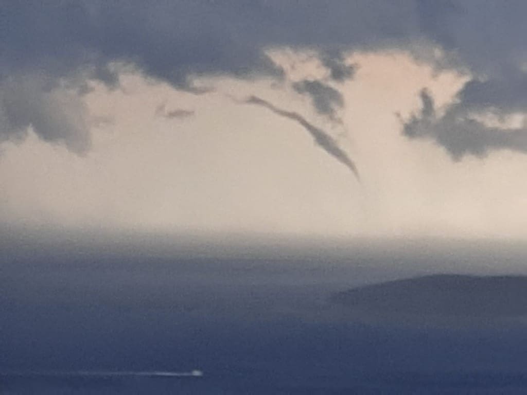 Oko 17:45 sati u Pelješkom kanalu stvorila se velika pijavica koja je potrajala nekoliko minuta, međutim nije stigla do kopna te se približavanjem kopnu postupno raspala.