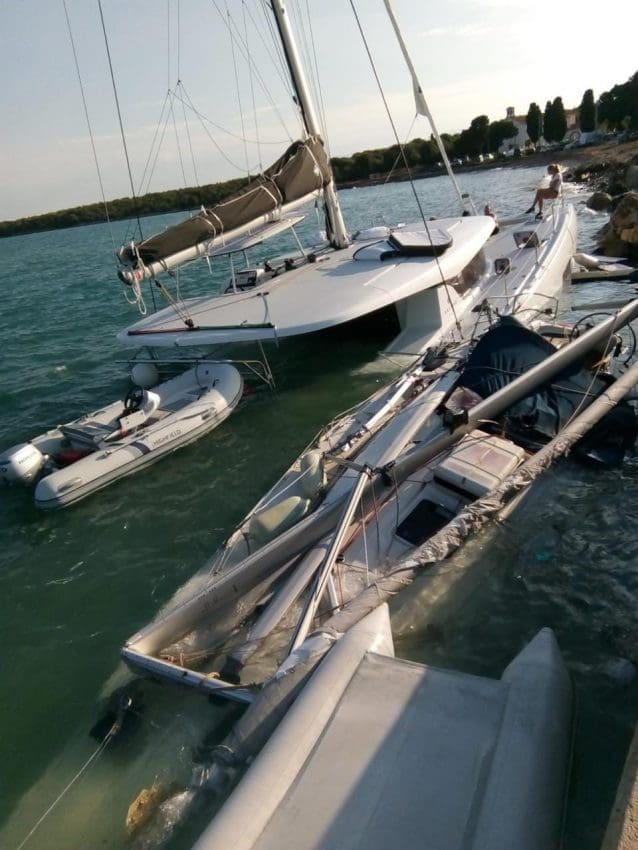 Morski.hr doznaje da je jaka tramontana u četvrtak oko 2 sati ujutro razbila katamaran Lagoon 420 i 12-metarsku jedrilicu.