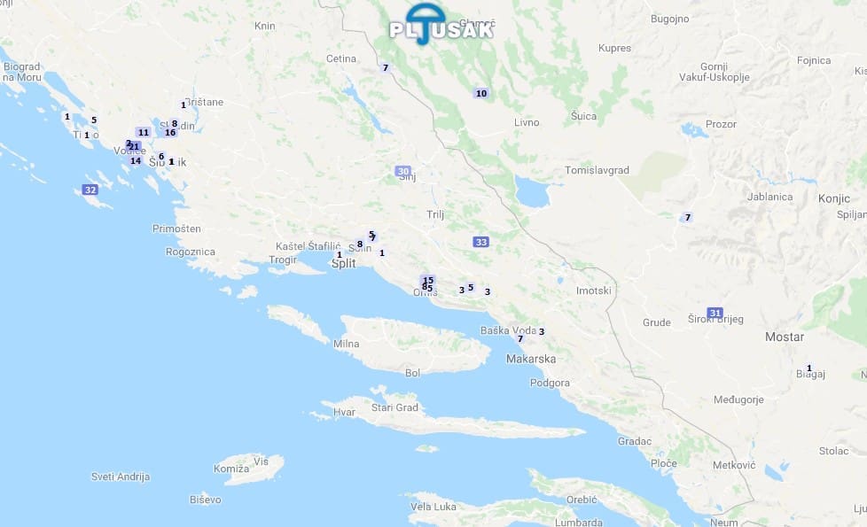 Pljuskova je najviše bilo u Zagori srednje Dalmacije i na šire šibenskom području. Prema podacima mreže meteo postaja Pljusak.com, do 19 sati najviše kiše je palo u Cisti Velikoj, 36 litara po kvadratnom metru. U Žirju su pale 32 litre, a za vrijeme najjačeg pljuska oko 11 sati temperatura se spustila na jesenskih 18 stupnjeva. Slijede Sinj s 30 litara, Vodice 21, Bilice 16, Omiš - HE Zakučac 15, Prvić 14 itd.