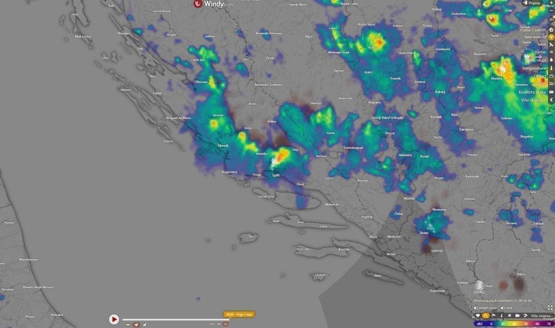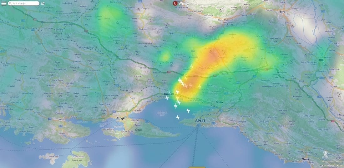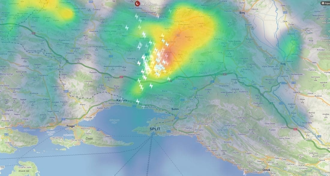 Oko 16 sati jak grmljavinski oblak razvio iznad Kozjaka, a prema odrazu DHMZ-ovog radara na Debeljaku, visina mu je dosezala 10 kilometara. Jaka nevera potom je zahvatila dijelove Kaštela gdje je u vrlo kratko vrijeme palo i preko 10 litara oborine po kvadratnom metru uz vjetar i osvježenje. Primjerice, u Kaštel Gomilici je izmjereno 20 litara po kvadratnom metru.
