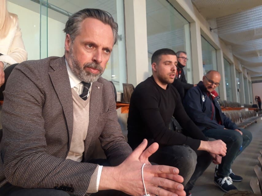 Predsjednik Uprave Hajduka Lukša Jakobušić došao je navijati za OK Split. Upravo je u tijeku uzvratni polufinalni susret između odbojkaša Splita i osječke Murse.