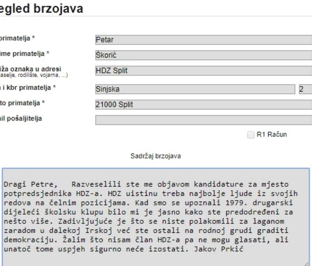 Jakov Prkić poslao je brzojav podrške svom školskom drugu iz klupe Petru Škoriću povodom izbora u HDZ-u.