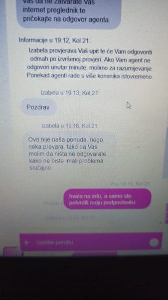 U svakom slučaju, primite li i vi ovakvu ili sličnu poruku, ne odgovarajte jer se radi o pokušaju prevare.