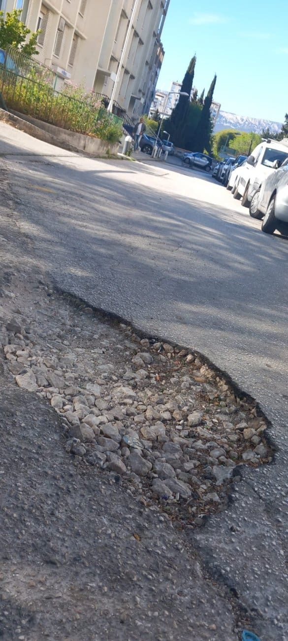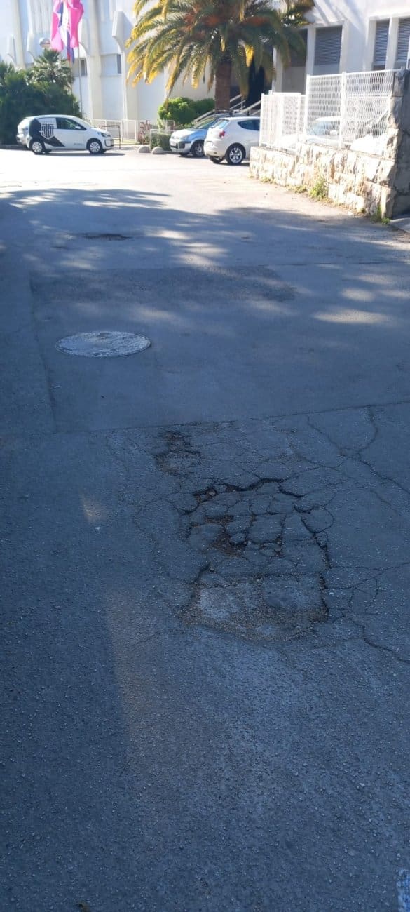 Na fotografijama koje je poslao vidljive su brojne udarne rupe, ispucali asfalt i dijelovi kolnika u kojima je asfalt potpuno propao, ostavljajući izloženo kamenje i neravne površine.