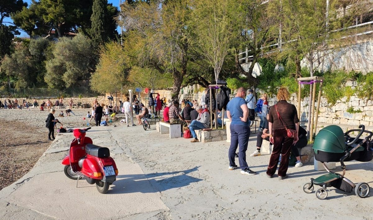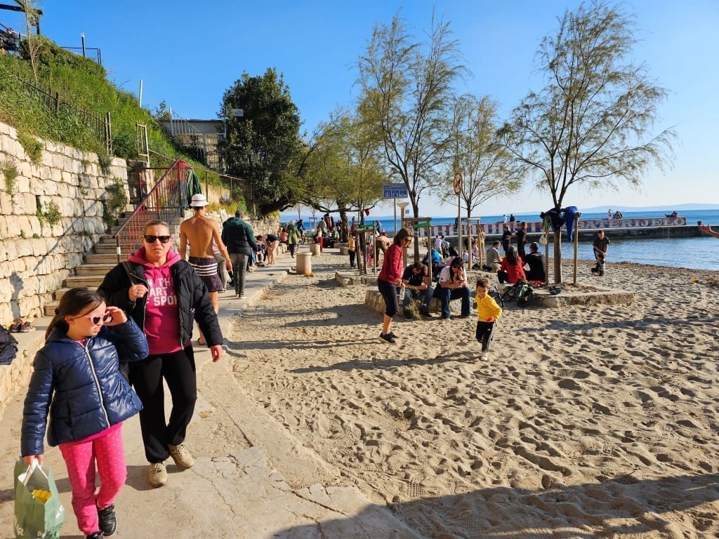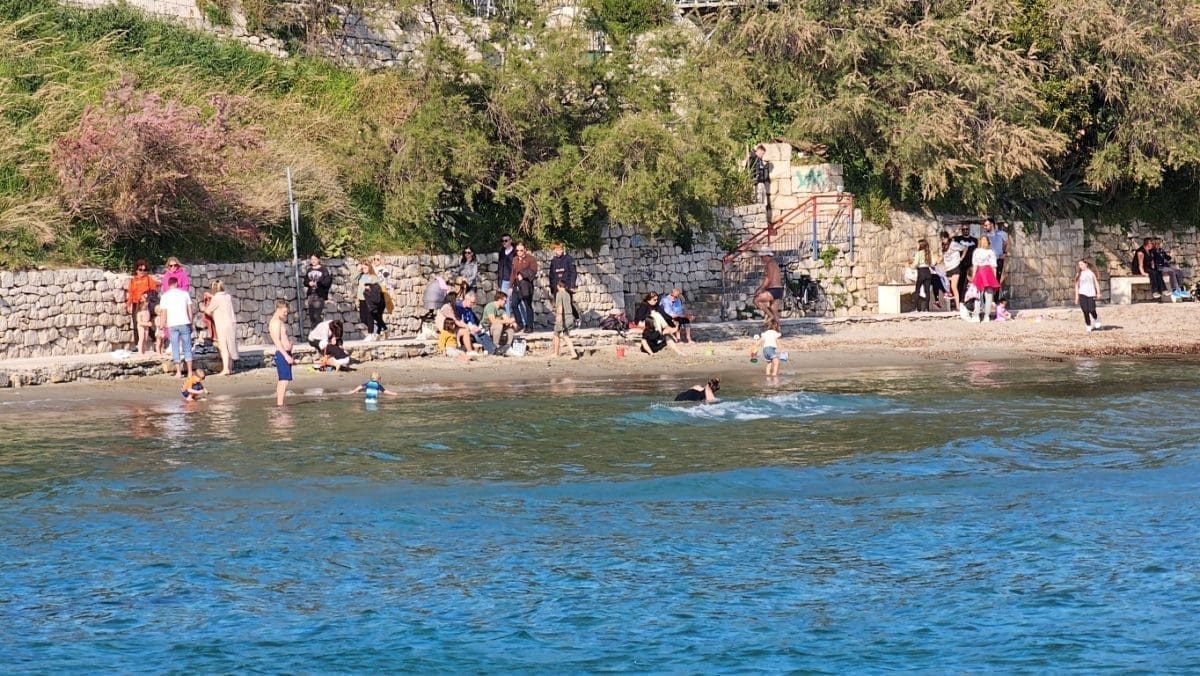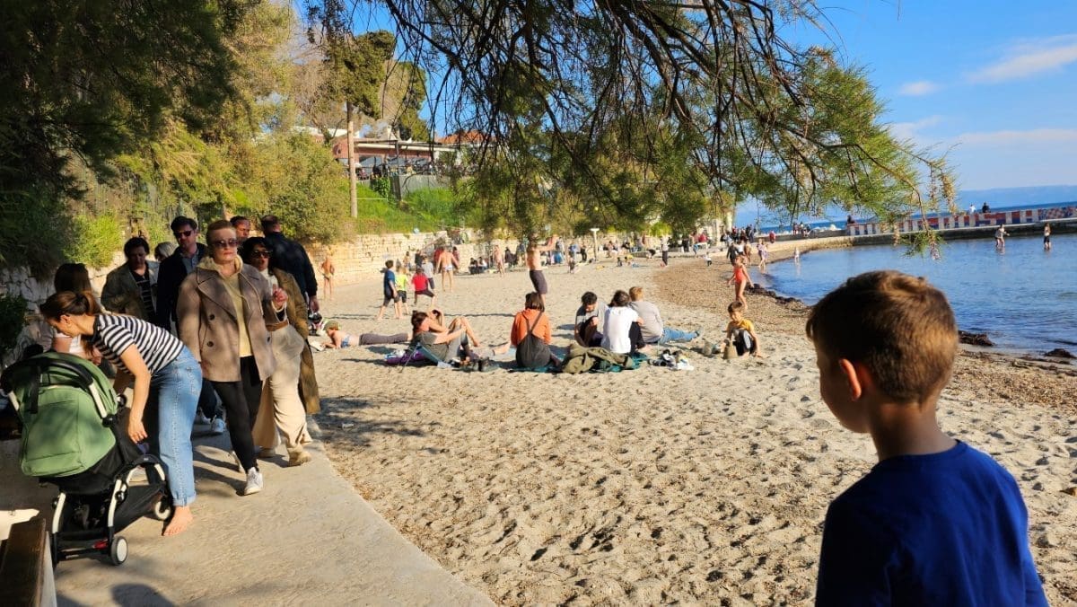 Iako je puhala bura, temperatura je bila prava proljetna, od 16 do 18 stupnjeva. Sasvim dovoljno da se napune plaže, kafići, ali i šetnice. Sve je bilo puno ljudi, uživali su i stari i mladi.
