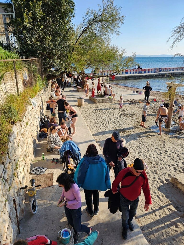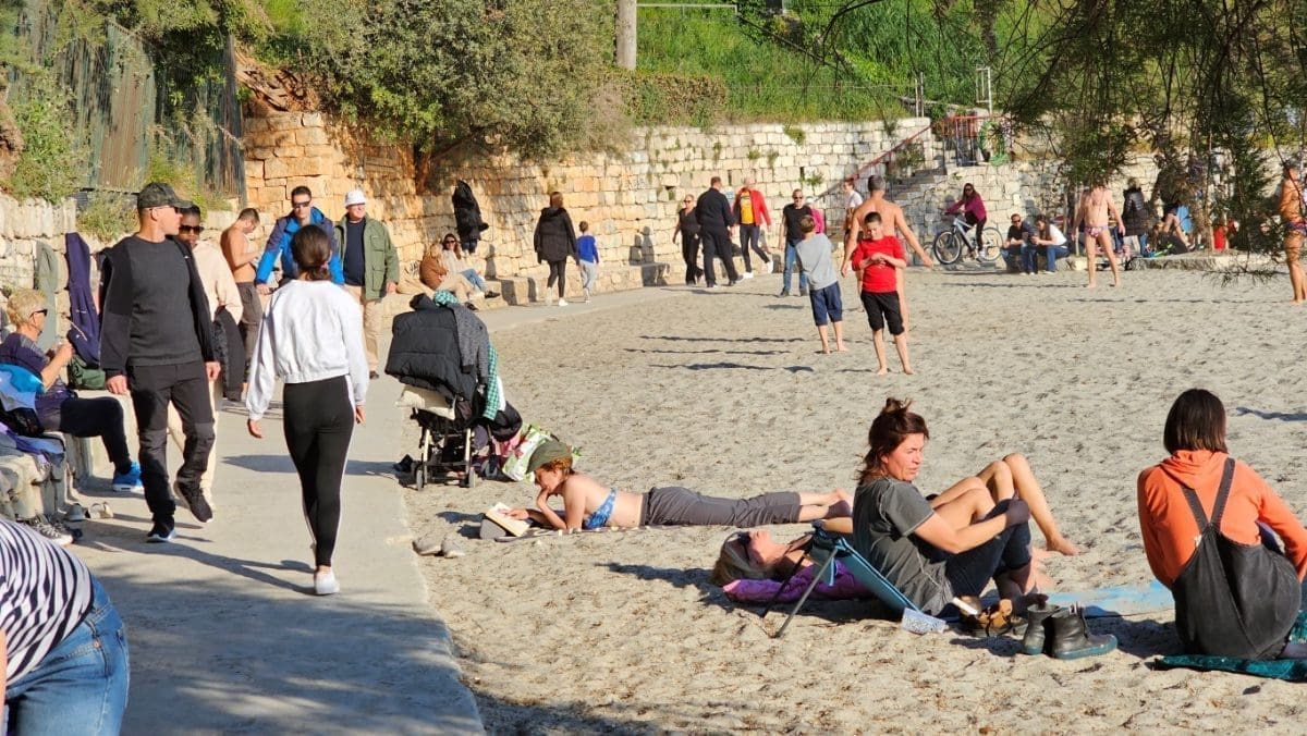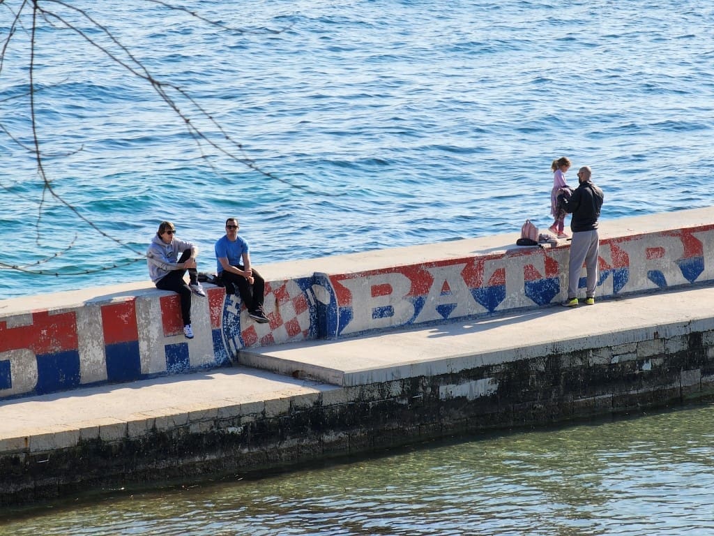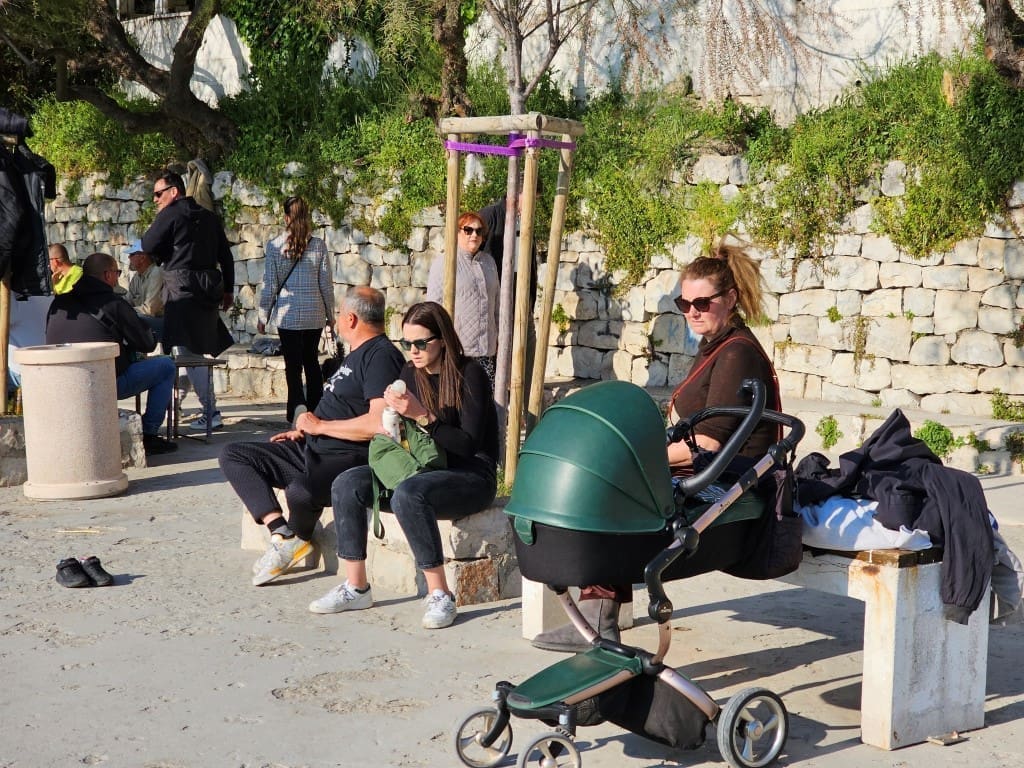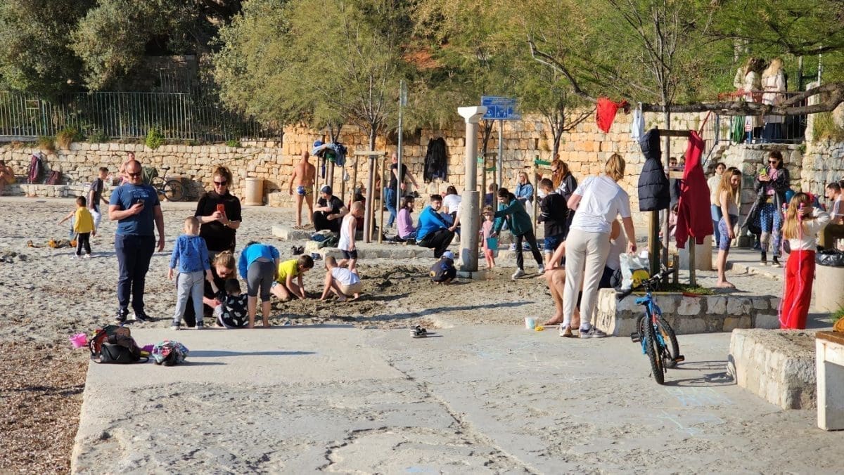 Iako je puhala bura, temperatura je bila prava proljetna, od 16 do 18 stupnjeva. Sasvim dovoljno da se napune plaže, kafići, ali i šetnice. Sve je bilo puno ljudi, uživali su i stari i mladi.