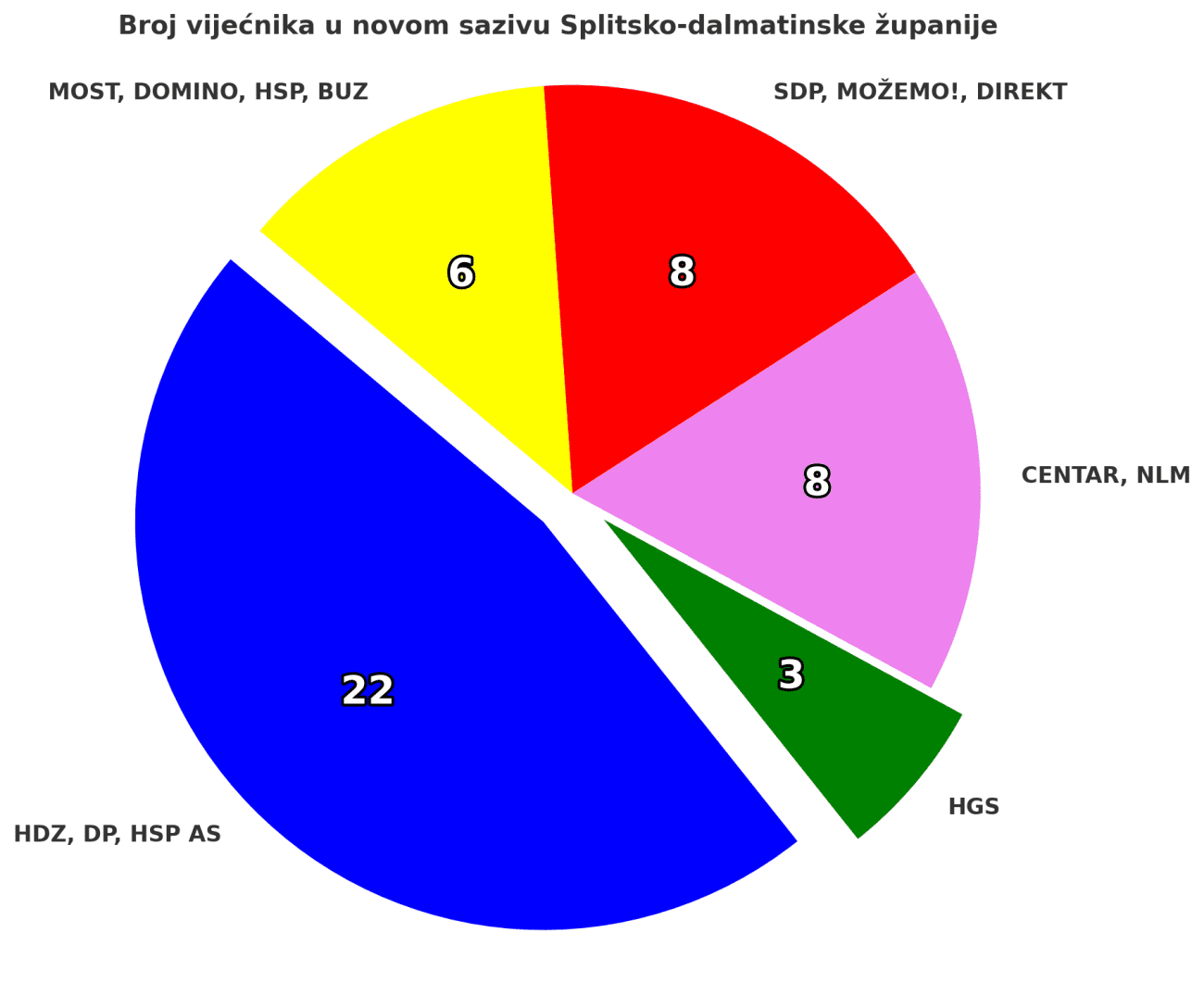 Prošle nedjelje, u koaliciji s Dominom, HSP-om i BUZ-om, Most osvojio 18.251 glas, odnosno 11,13 posto glasova i u Županijskoj skupštini Splitsko-dalmatinske županije imat će 6 vijećničkih mjesta (od 47). Po svemu sudeći, Most će ostati oporba pošto HDZ i HGS imaju dovoljno za sastavljanje većine.