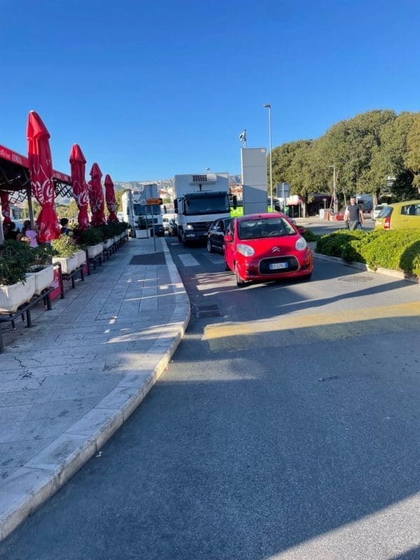 Redovito se na izlazu iz luke stvaraju gužve zbog jedne prometne trake na koju se uključuju svi automobili koji dolaze s otoka, ili pak oni koji su u prolazu zbog "nove-stare" prometne regulacije niz Ulicu kralja Zvonimira.