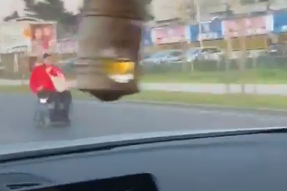 Kako se može vidjeti na snimci, jedan muškarac vozio je električna invalidska kolica i to kolnikom. No da stvar bude puno gora po njega i ostale sudionike u prometu, to je radio vozeći se suprotnim smjerom.