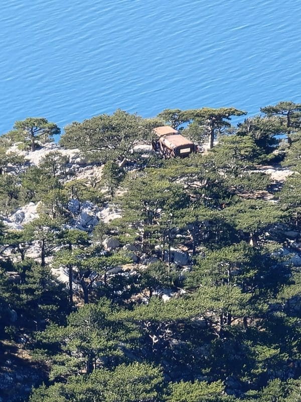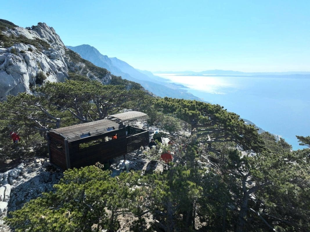 Malo, ali vrlo "elegantno" planinarsko sklonište nalazi se na rubu predivne borove šume s pogledom na more i srednjodalmatinske otoke.