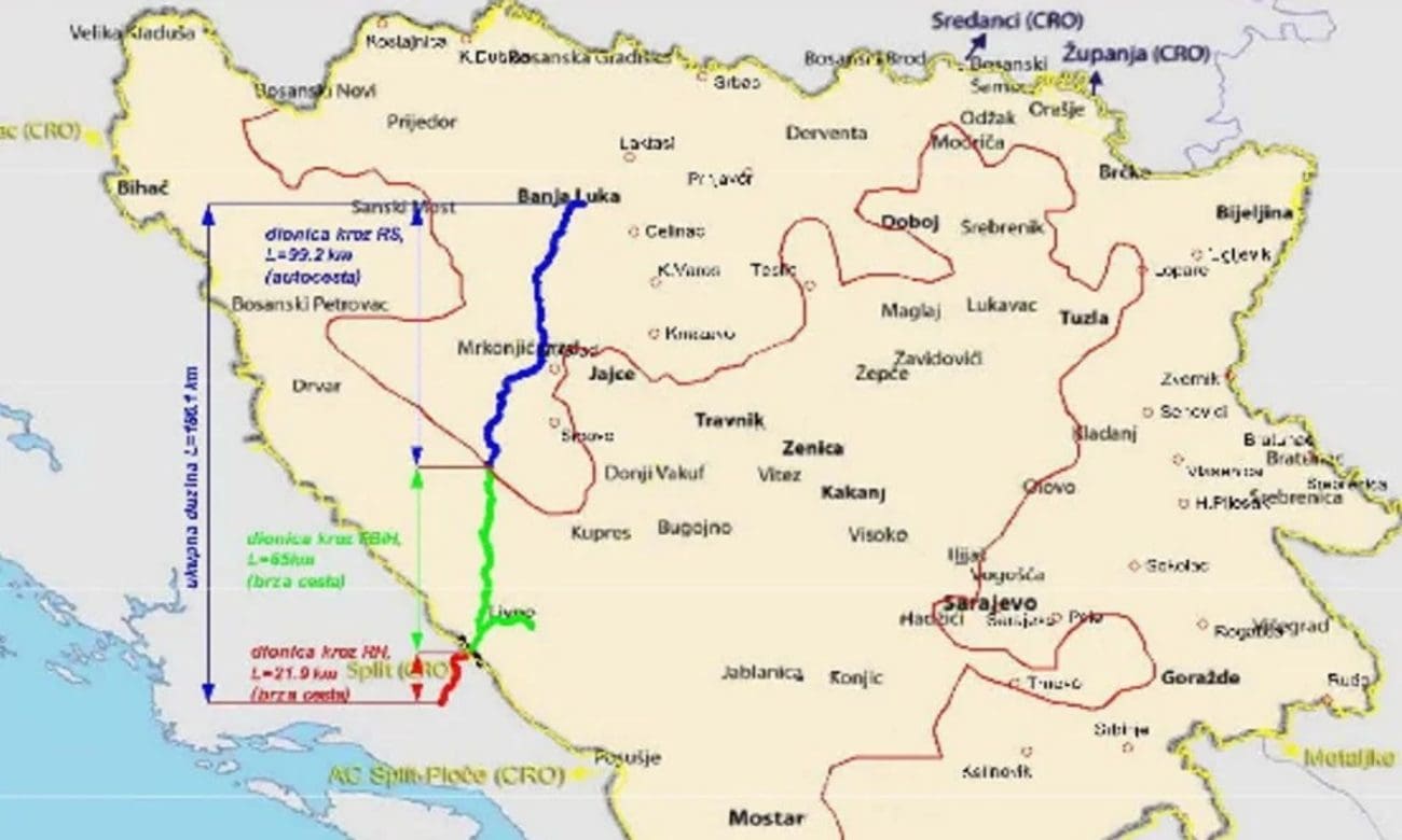 Dakle, Banja Luka i Split bit će povezani autocestom dugom 186 kilometara. Procjena je da će njena izgradnja kroz Bosnu i Hercegovinu koštati tri milijarde KM.