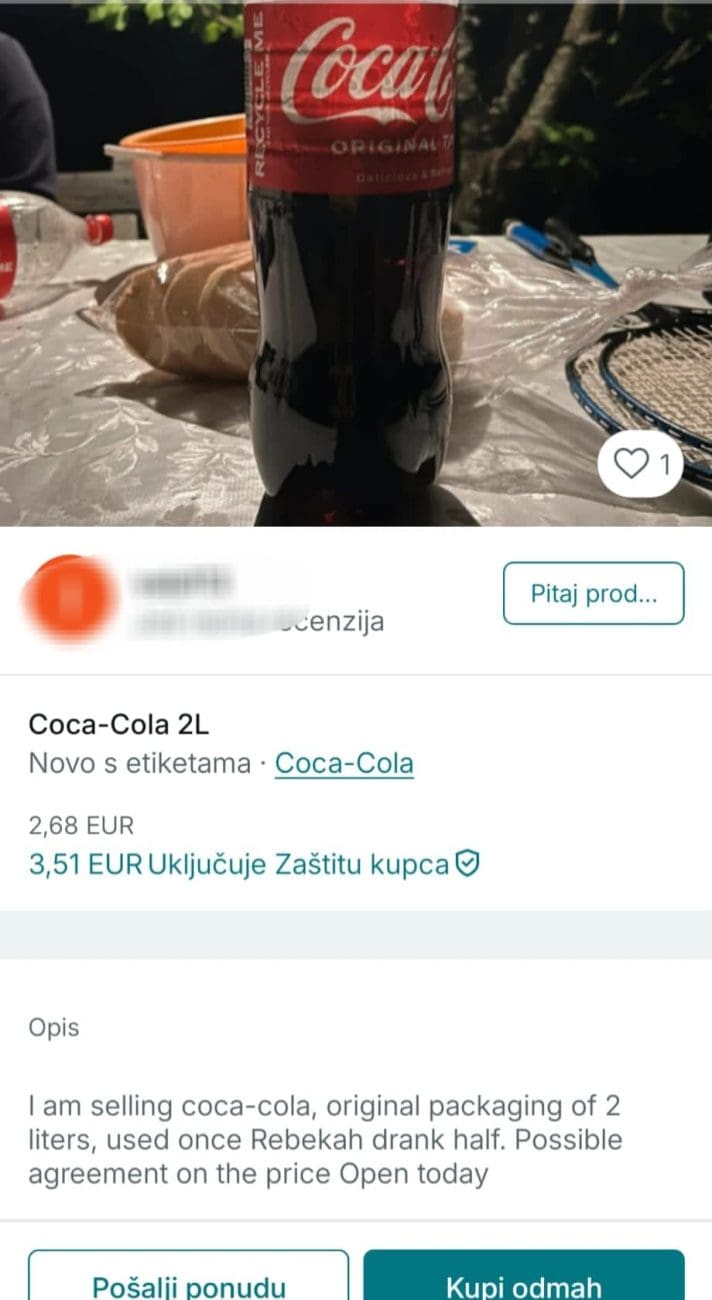 Vinted je platforma gdje možete pronaći sve – od vintage Levisica do haljine nošene samo "za krizmu". Ali ponekad nas oglasi tamo stvarno ostave bez riječi. Najnoviji hit? Boca Coca-Cole.