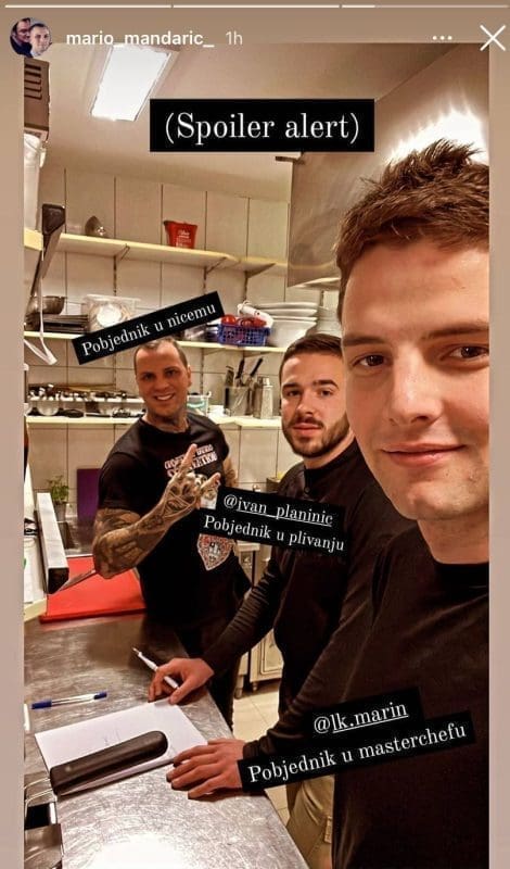 Mandarić je na InstaStory postao fotografiju s Ivanom Planinićem i Lukom Marinom. Ovaj potonji se još uvijek nalazi u konkurenciji u Masterchefu.