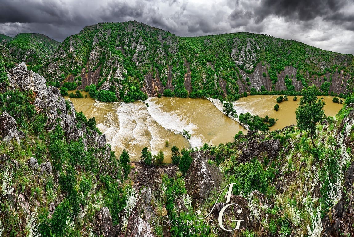 "Rijeka Krupa grmi kroz svoj kanjon, dok iz olovnih oblaka kiša neumorno pada", stoji u opisu fotografije.