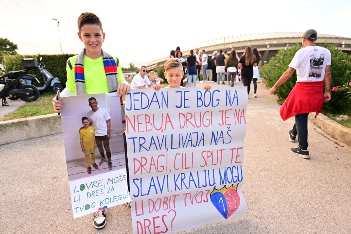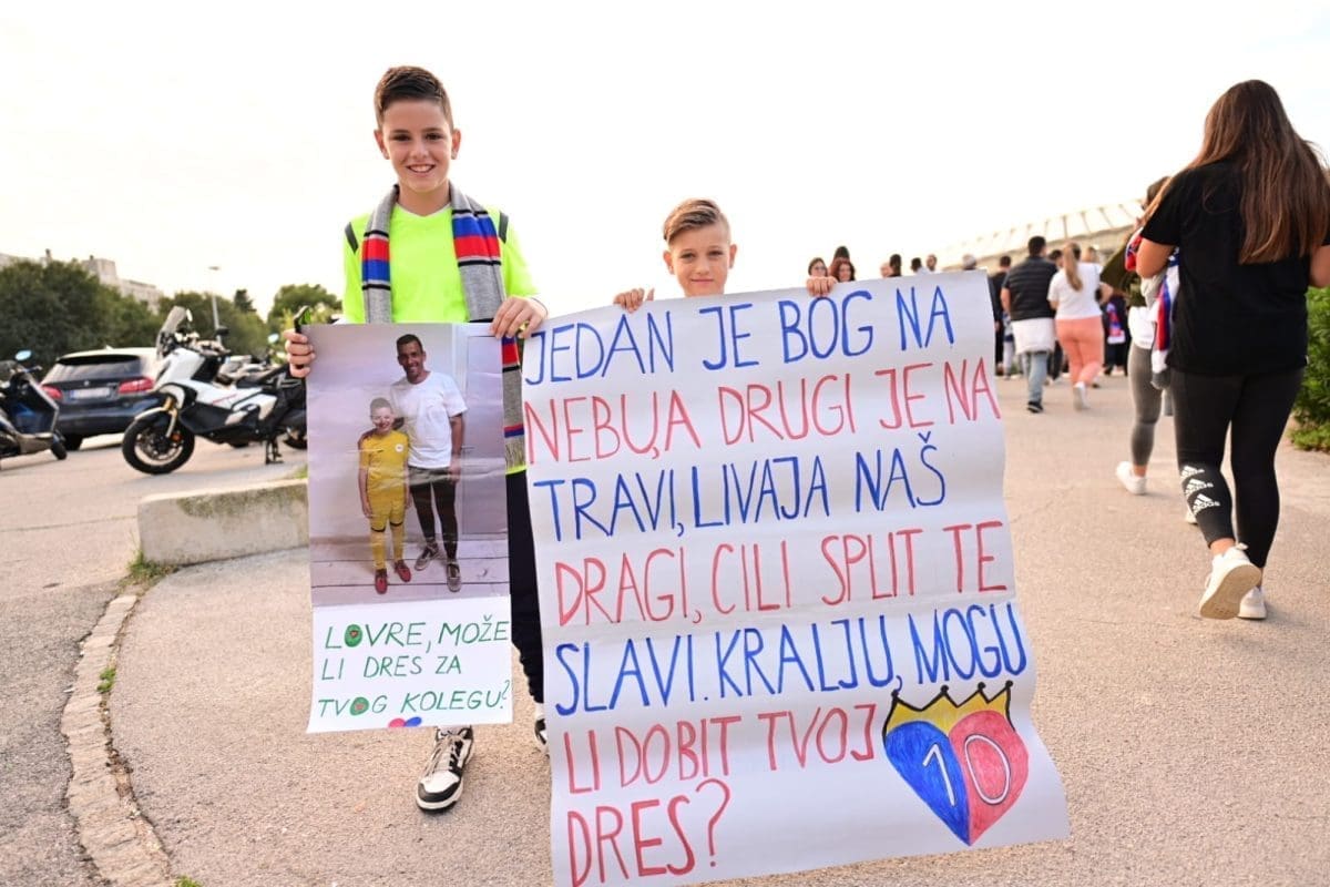 U Poljud će i dječji transparenti u kojima mole dres svojih nogometnih idola.