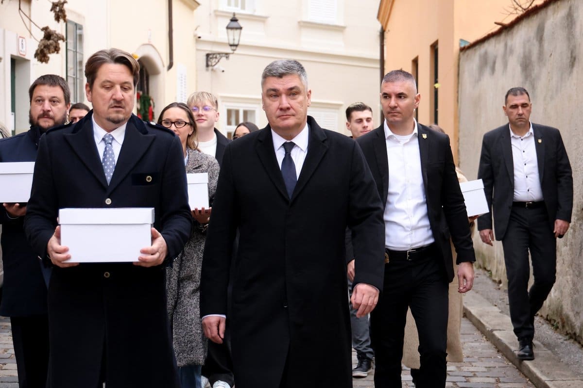 „Stajat ću tu za hrvatske ljude, za hrvatske institucije, za hrvatski Ustav. Poštivao sam ga i štitit ću ga od nasrtaja drugih i kada je u pitanju Hrvatska vojska, institucije. Davanje, odavanje i podavanje Hrvatske, pa čak nekada i svođenje Hrvatske, u ratove i opasne situacije kojima ne da nismo dorasli - nitko im nije dorastao, ni tisuću puta veći od nas - nego tamo nam nije mjesto. Naša djeca i unuci tamo ići neće dok sam predsjednik Republike. To sam slušao od građana - ne samo u ova tri dana, nego i u ovih nekoliko godina - kod toga stojim čvrsto. Ne želim nikome loše, prema svakom s dobrim namjerama, otvoreno, ali bez naivnosti, bez lakovjerja“, poručio je predsjednik Republike Zoran Milanović nakon što je danas Državnom izbornom povjerenstvu predao prijedlog kandidature za predsjednika Republike.