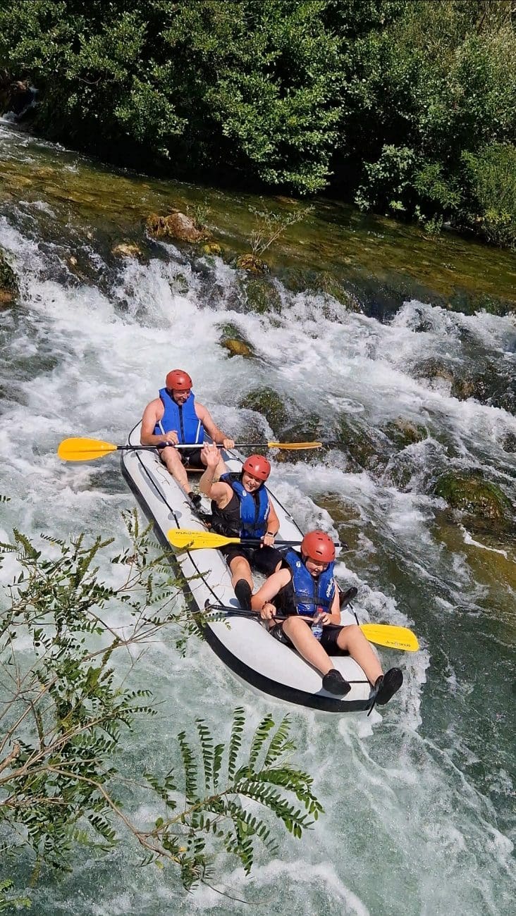 Rafting avantura počinje polaskom iz Splita do kanjona rijeke Cetine gdje vas čeka kompletna rafting oprema, čamac te profesionalni skiperi koji će učiniti vaš rafting ugođaj još boljim. Vožnja traje tri sata i prolazeći kroz 10 km dugu rafting stazu uživat ćete u prekrasnoj prirodi i biserno čistoj rijeci bogatoj brojnom florom i faunom. Rafting još zanimljivijim čine brzaci i slapovi koji se neprestano izmjenjuju.