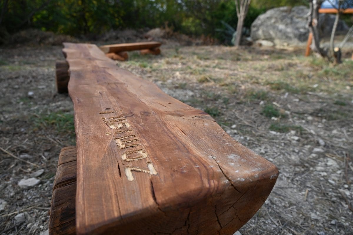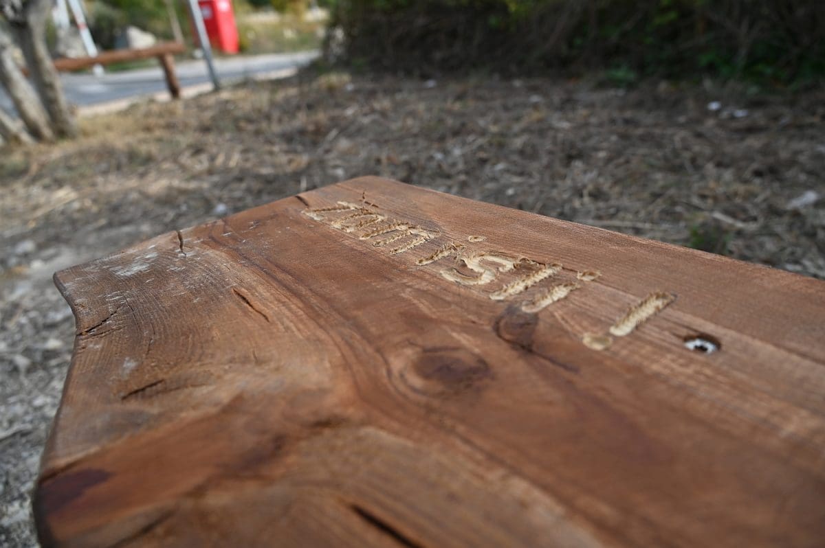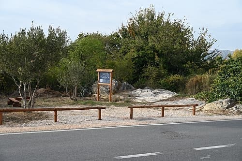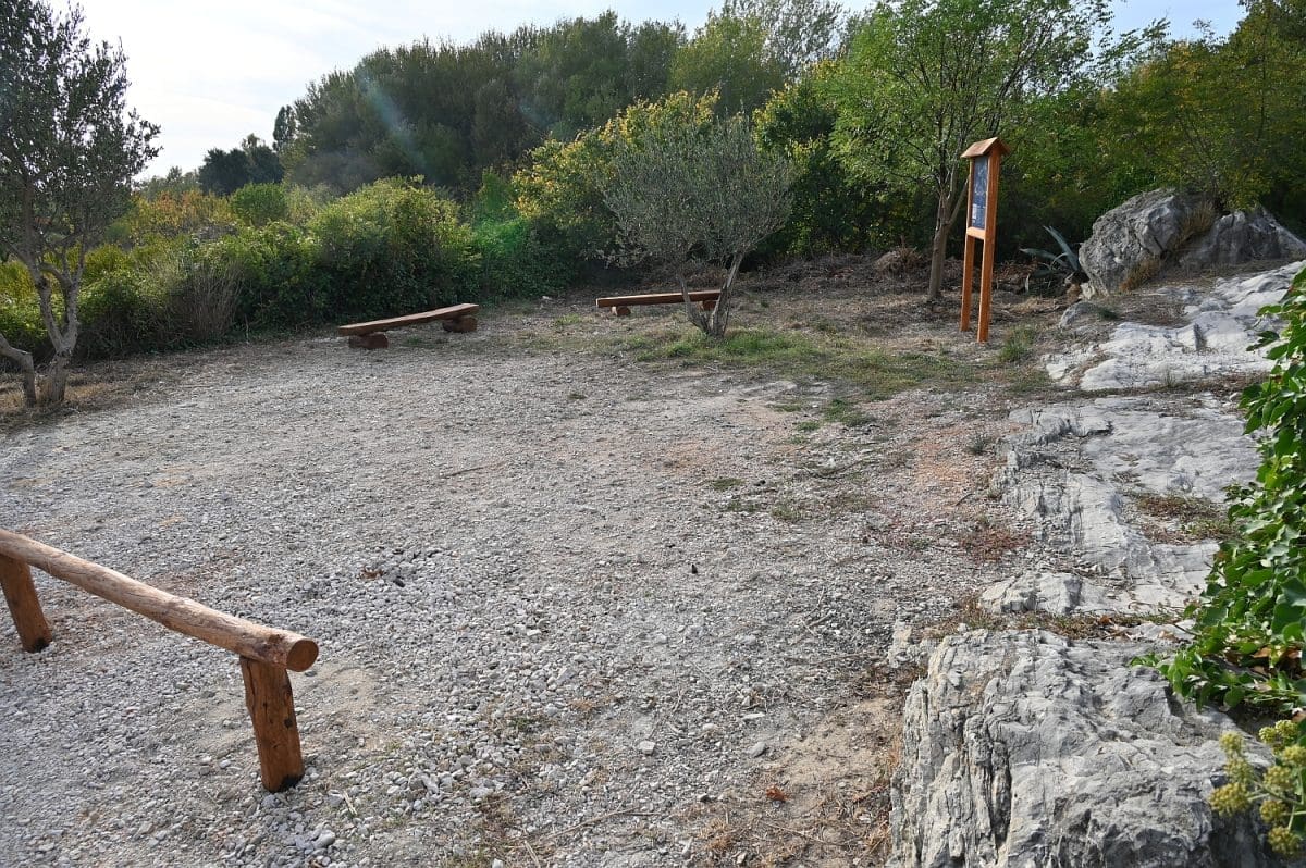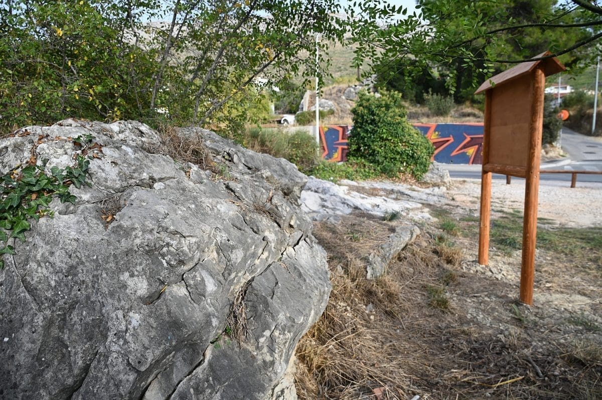 Ima već nekoliko dana da je neposredno uz kolnik Poljičke ceste, kojom se s magistrale skreće u Žrnovnicu, na petstotinjak metara od toga skretanja, s lijeve strane, a prekoputa Tommya, uređen dio zemljišta. Površina od otprilike 100 metara četvornih, na kojoj su još 2010. posađene dvije masline i jedan bagrem, ograđena je nedavno niskom ogradom od drvenih oblica, opremljena je dvjema drvenim klupama i info-pločom postavljenom u drveni okvir na oko metar visine. Ta je ploča postavljena uz onizak kamen-živac na sjevernoj strani toga malog ograđenog prostora, a klupe na njegovu suprotnu stranu tako da oni koji na njima sjede gledaju u ploču i kamen, rijeka im, koju odatle ne vide od raslinja, teče slijeva, a Perun im je zdesna. To se tako vidi s ceste i onaj koji ne uđe u taj ograđeni prostor ne može samo na temelju toga što vidi u prolazu, s ceste, razabrati o čemu je riječ.