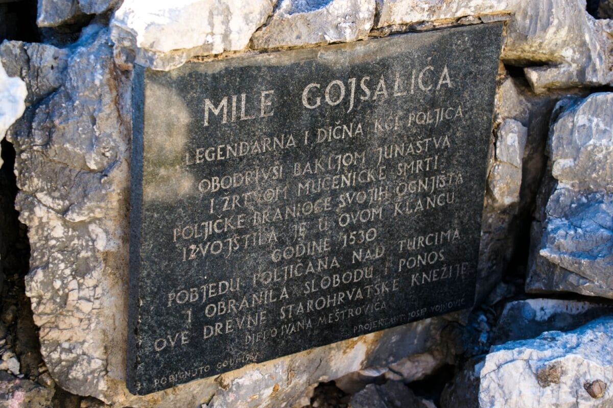 Uz vidikovac nalazi se izuzetno vrijedan spomenik, kip legendarne poljičke junakinje Mile Gojsalić, rad čuvenog hrvatskog i svjetskog kipara Ivana Meštrovića.