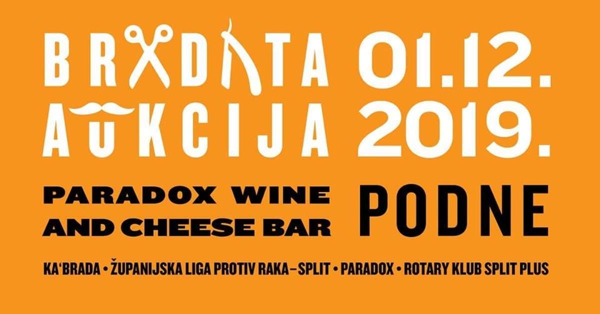 Bradata aukcija, jedinstvena humanitarna akcija, u organizaciji brijačnice ka'Brada i Wine & Cheese Bara Paradox uz podršku Županijske lige protiv raka, a s ciljem sveopćeg podizanja svijesti o raznim oblicima karcinoma, održati će se i ove godine u nedjelju 1. prosinca godine s početkom u 12 sati.
