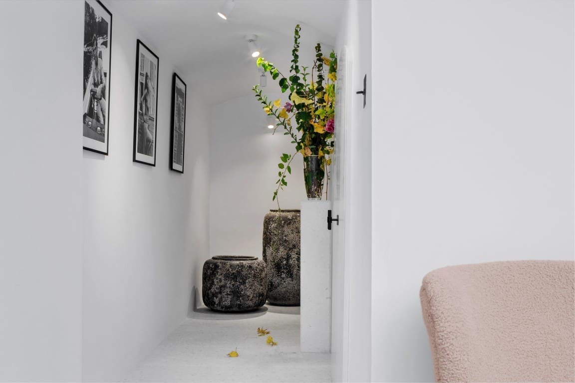 Nastavlja se prema hodniku, koji podsjeća na ulazak u umjetničku galeriju. Upravo ovo je i bio cilj mladog arhitekta, koji je s bijelim zidovima te portretima po dužini cijelog hodnika želio stvoriti svojevrsni osjećaj sofisticiranosti ulaska u umjetničku galeriju.