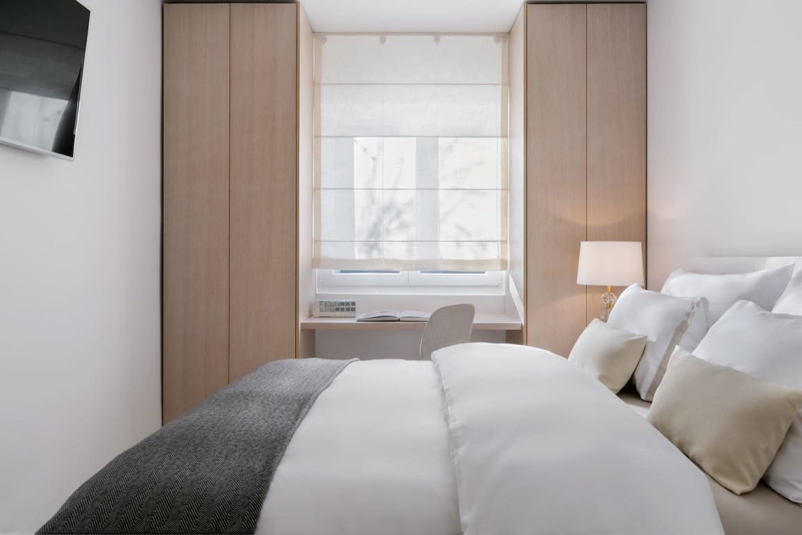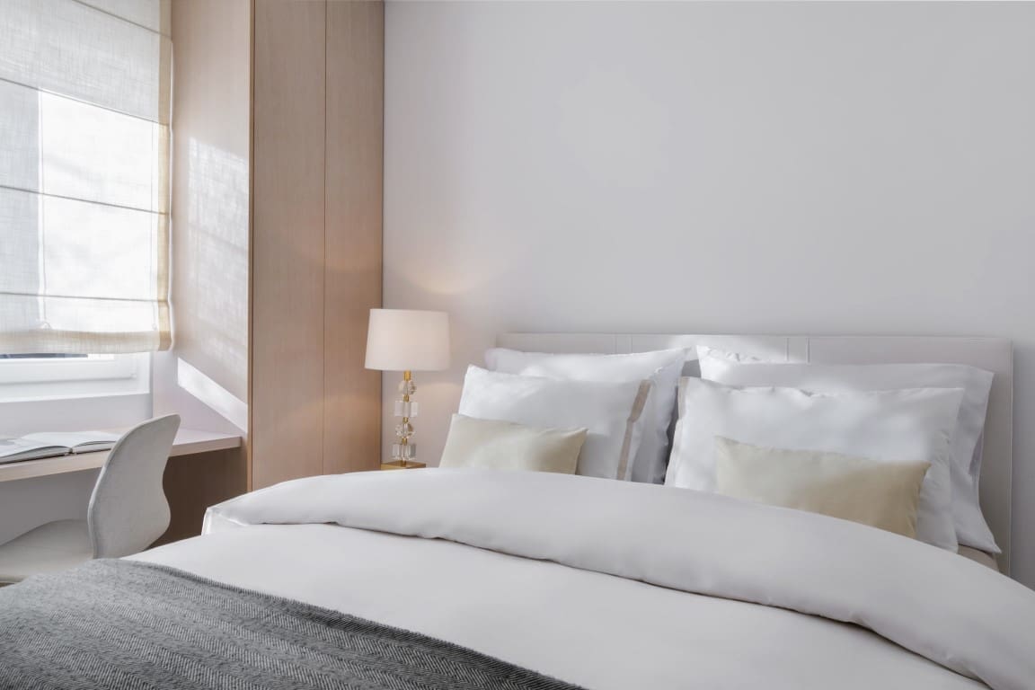 Posebnu pažnju pri uređenju imala je po mnogima najbitnija prostorija kuće - glavna spavaća soba. Ono što je posebno zanimljivo u ovom prostoru je pozicioniranje glavne kupaonice. Naime, u spavaću sobu ulazi se kroz samo kupaonicu, koja vodi do spavaće sobe, a fluidnost prostora nastavlja se na walk-in ormar.