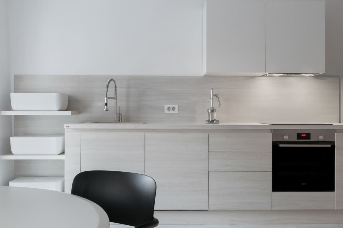 Kuhinju krasi minimalistički dizajn. Imajući na umu da je kuhinja prostorija koja mora zadovoljiti niz ne samo estetskih, već i funkcionalnih kriterija, osigurani su visoko kvalitetni spremnici hrane te radne površine. Staklena stijena koja se pruža po cijeloj dužini ovog 'open space' prostora vodi do prostranog balkona koji naprosto oduzima dah.