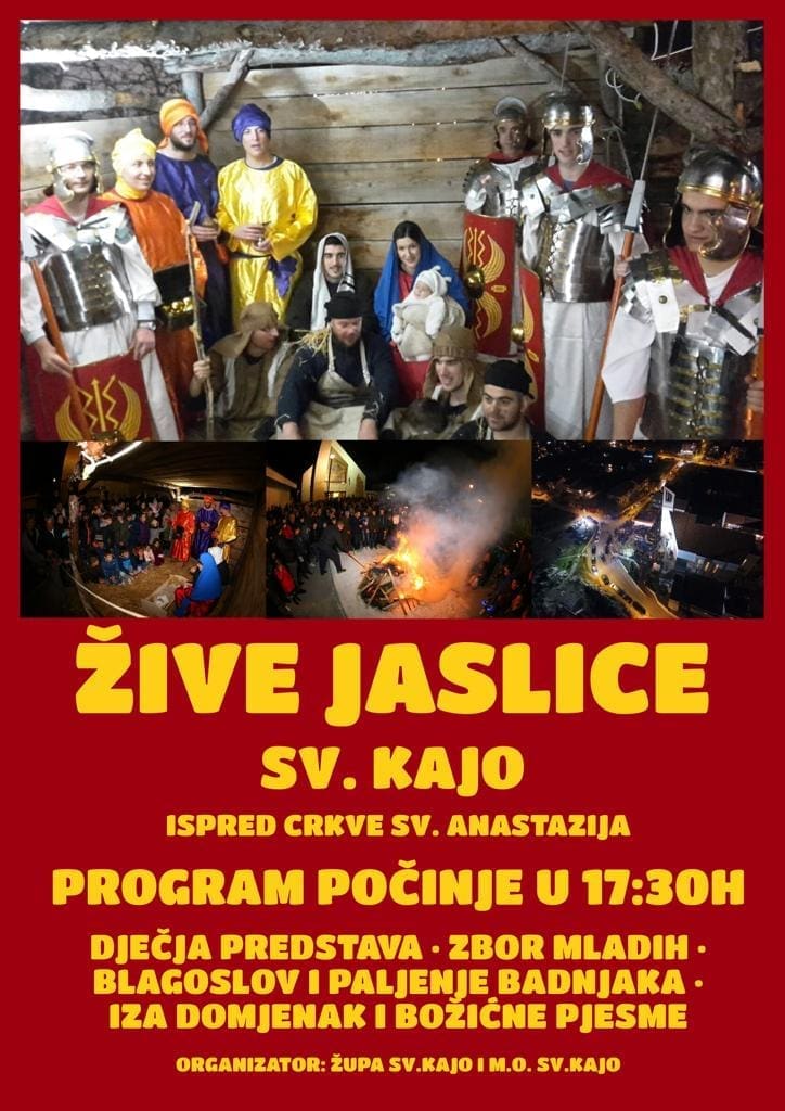 U ponedjeljak 24. prosinca na sam Badnji dan dogovorite obiteljski izlazak u Sveti Kajo jer možete pogledati i razgledati žive jaslice uprizorene od strane župljana župe Sveti Kajo.