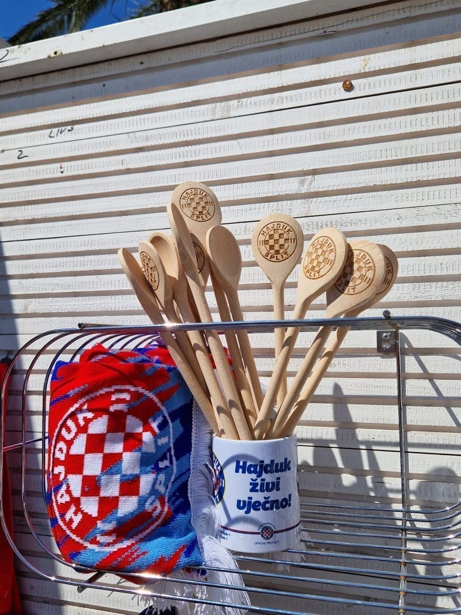 Među šalovima, kapama, šalicama, privjescima s Hajdukovim grbom, nama su za oko zapele kuhače.